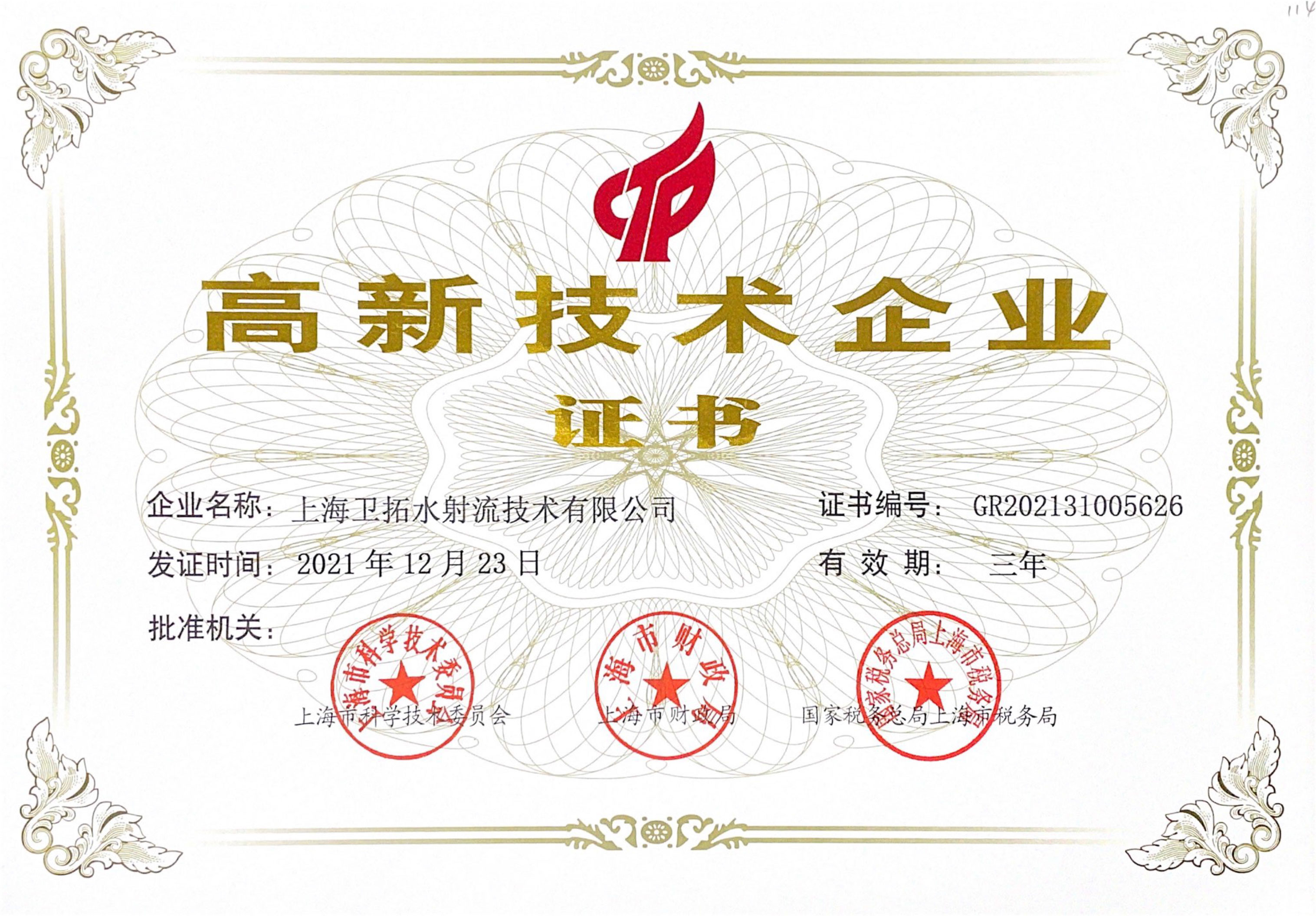 近日,上海衛(wèi)拓榮獲“高新技術(shù)企業(yè)”稱號。